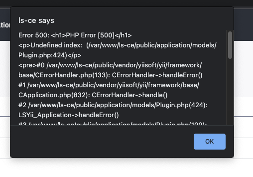 statFunctions was the plugin in question. @DenisChenu I think I asked you about it and you recommended to uninstall and reinstall. |
