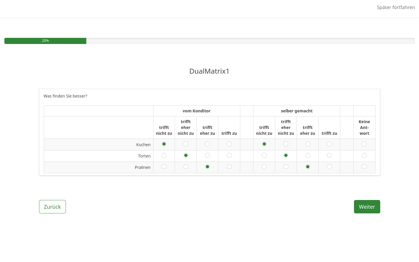 <answer><![CDATA[Ich möchte mir die Befragung/Erhebung anschauen, aber noch keine verbindlichen Angaben machen.]]></answer>