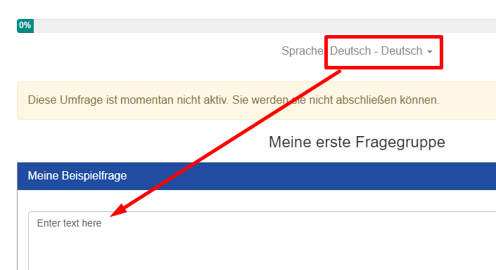 | Description | I have created a very simple 1 questin survey with 3-4 languages. It holds a text question for which I added some default text for every language. There are two issues: