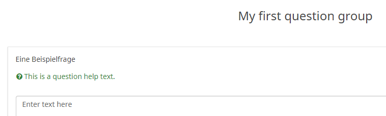 @DenisChenu, I have used the 2 page survey and added a German question text. But when switching to all in one format and changing the language using the lang switch top right, I see the question text being adjusted but the default text stays in EN and does not get loaded using DE language. This looks wrong. I am not sure though if we can fix this easily. |