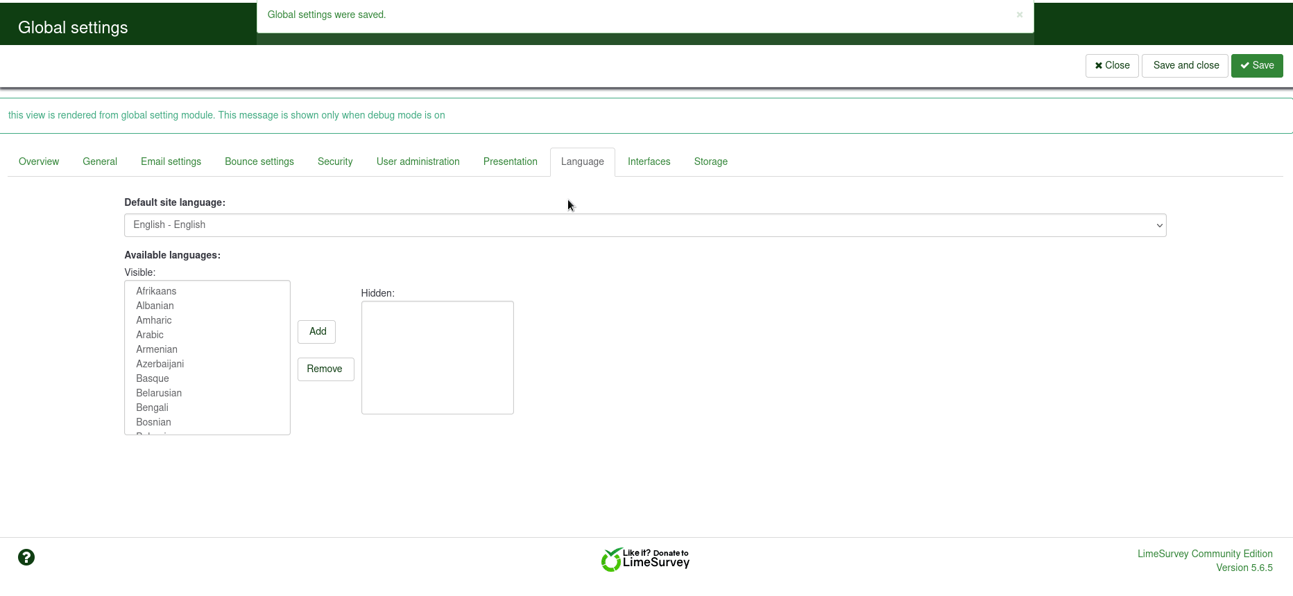 | Summary | 18804: Global settings doesn't stay at same tab when save | ||||