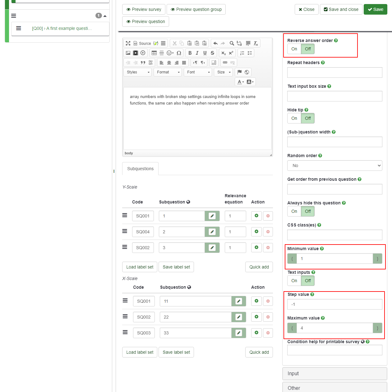 | Description | When selecting a negative step value and/or with reverse answer order, a session timeout can be triggered in functions that are not correctly written. | ||||