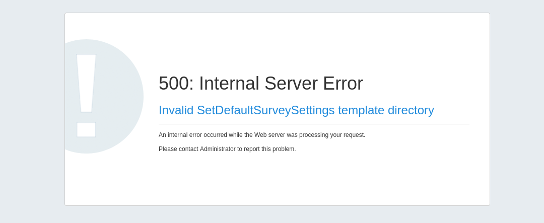 | Steps To Reproduce | Steps to reproduceCreate a SetDefaultSurveySettings theme Check default theme at admin/globalsettings (Fruity for example) and set it as a valid theme Expected resultSurvey can be view using Fruity Actual result500 error | ||||