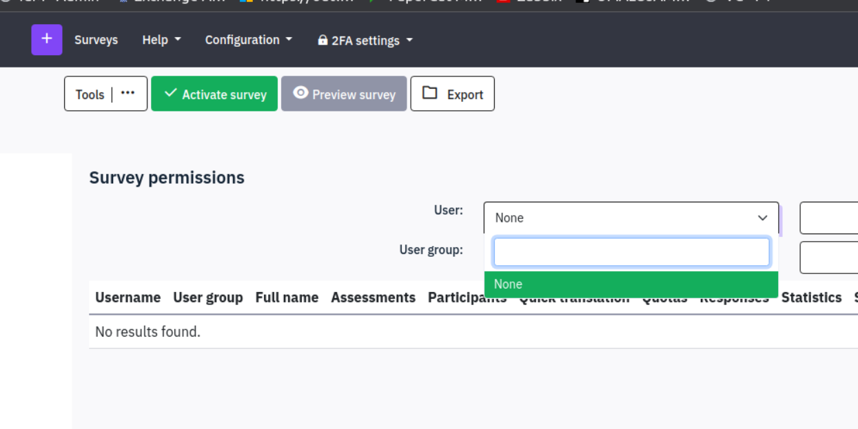 | Steps To Reproduce | Steps to reproduceAfter creating a survey, when a user without super-admin permissions try to add users to the survey, there aren't listed any user. Expected resultHave a list of users to add to the survey Actual resultIt doesn't have any users on the list. | ||||