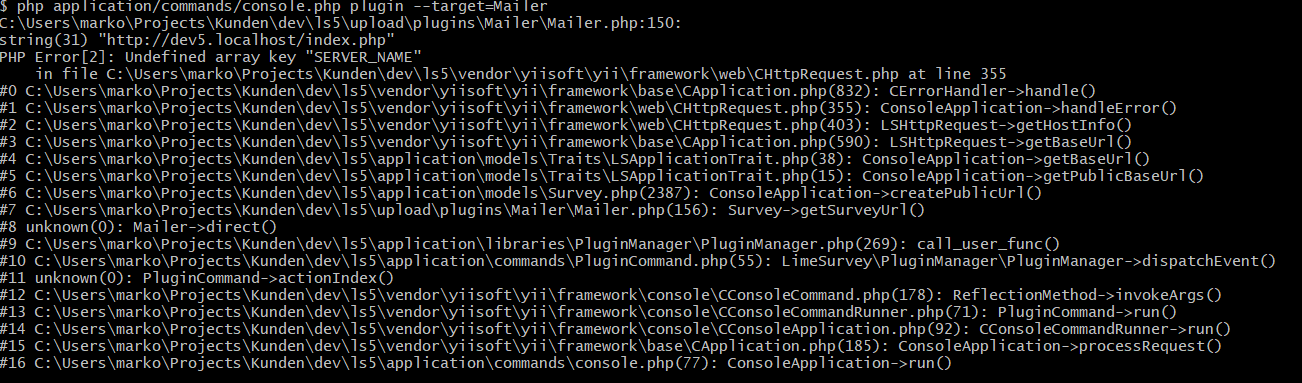 Hi, 1- I managed to trigger sendMailCron using the CLI while using this https://github.com/LimeSurvey/LimeSurvey/pull/3454 (LS v5.6.37, PHP 8.0.2, sendMailCron version 4.3.2) without any errors. (see first picture for cli results) Si vous ne souhaitez pas participer à ce questionnaire et ne souhaitez plus recevoir aucune invitation, veuillez cliquer sur le lien suivant : Si vous êtes sur liste noire mais que vous voulez participer à ce questionnaire et recevoir les invitations, merci de cliquer sur le lien suivant : 2- I tried this line as mentionned in another comment: php application/commands/console.php plugin --target=Mailer, but did not seems to do anything on my installation. (No exception raised, nothing). Is there any other specific test that needs to be done? |