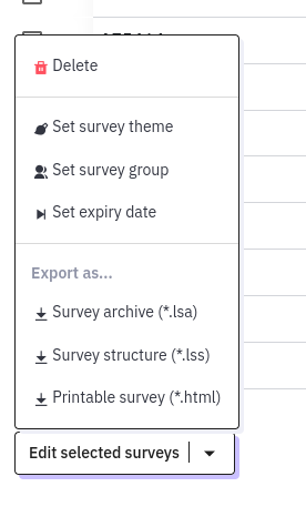 | 2023-11-27 12:25 | DenisChenu | Summary | Quick action button ar stange in Survey list => Quick action button are strange in Survey list |