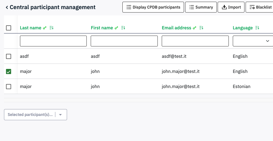 | Description | Batch actions dropdown is disabled after first use on Central participant management page. | ||||