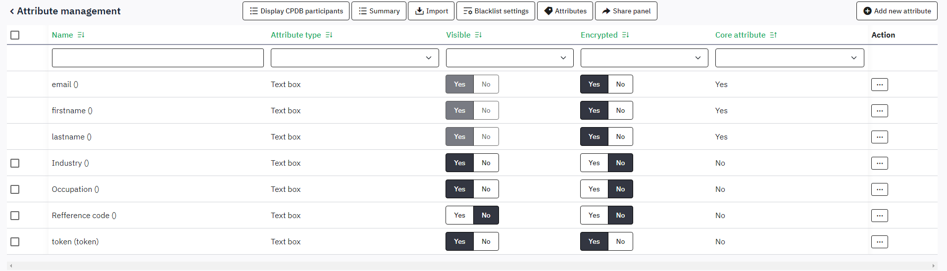 | Description | I have added separate attributes for Central Participant Manager. They started to be displayed, but with them came the Action column in the table. Clicking on any "..." displays a drop down menu with the same content, but none of the items in it work and nothing happens. Only the # in the address bar is added. What could be the problem and how can I make this menu work? Images attached. | ||||