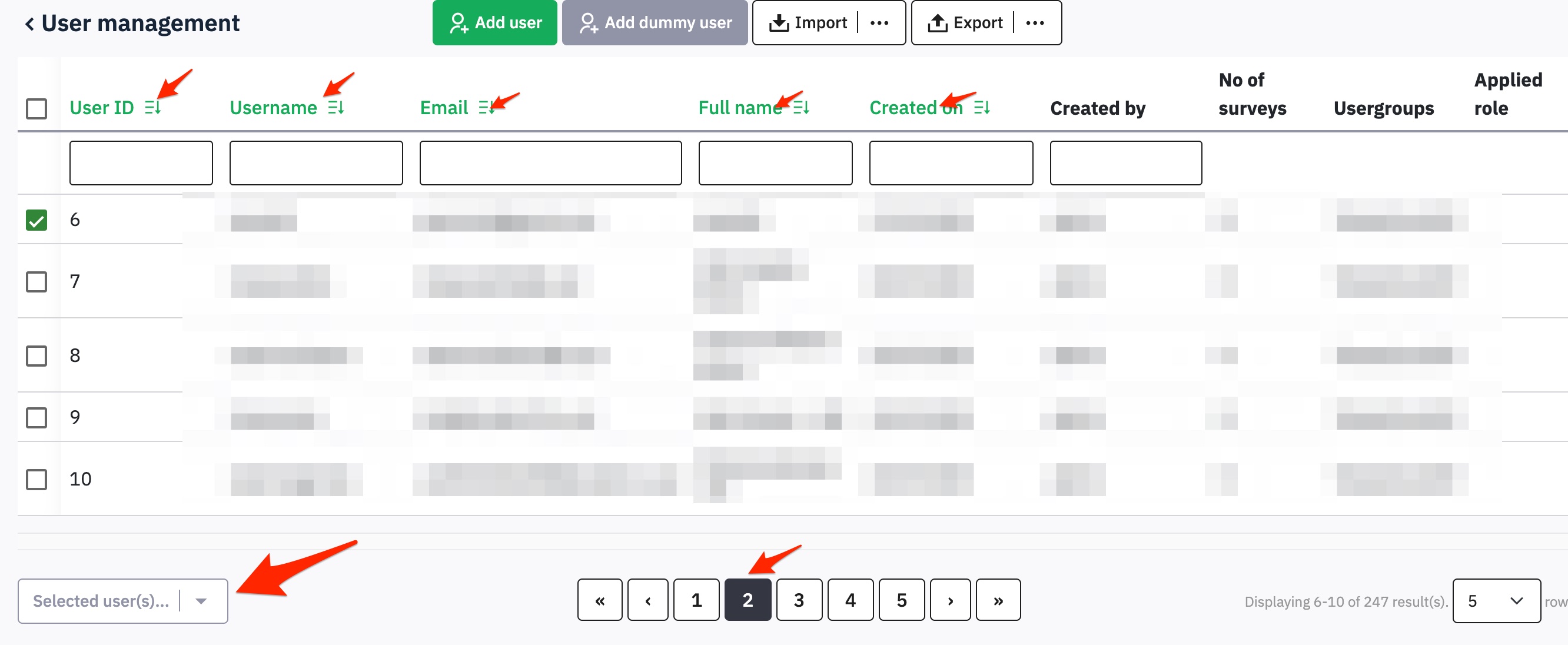 | Description | Batch actions(bottom left button - Selected user(s)...) dropdown is disabled after first use on User management page. If we order the users by any field (User ID, Username, Email, Full name, Created on) OR navigate in the index pages (in the bottom of User Management page), then after selecting one or more users the dropdown ((bottom left button - Selected user(s)...) ) is disabled | ||||