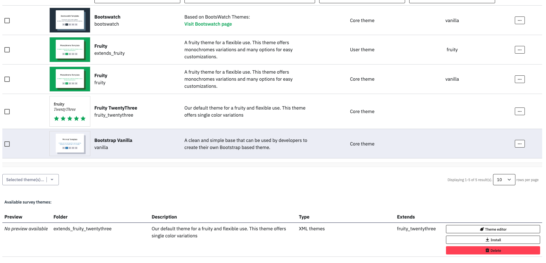 | Steps To Reproduce | Steps to reproduce1) Under Themes extend the Fruity TwentyThree theme. Expected resultI should be able to extend the theme. Actual resultMy attempt to extend the theme is blocked. | ||||