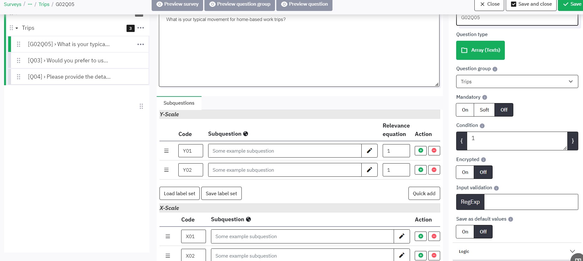 | related to | 19160 | confirmed | Unable to save subquestions |