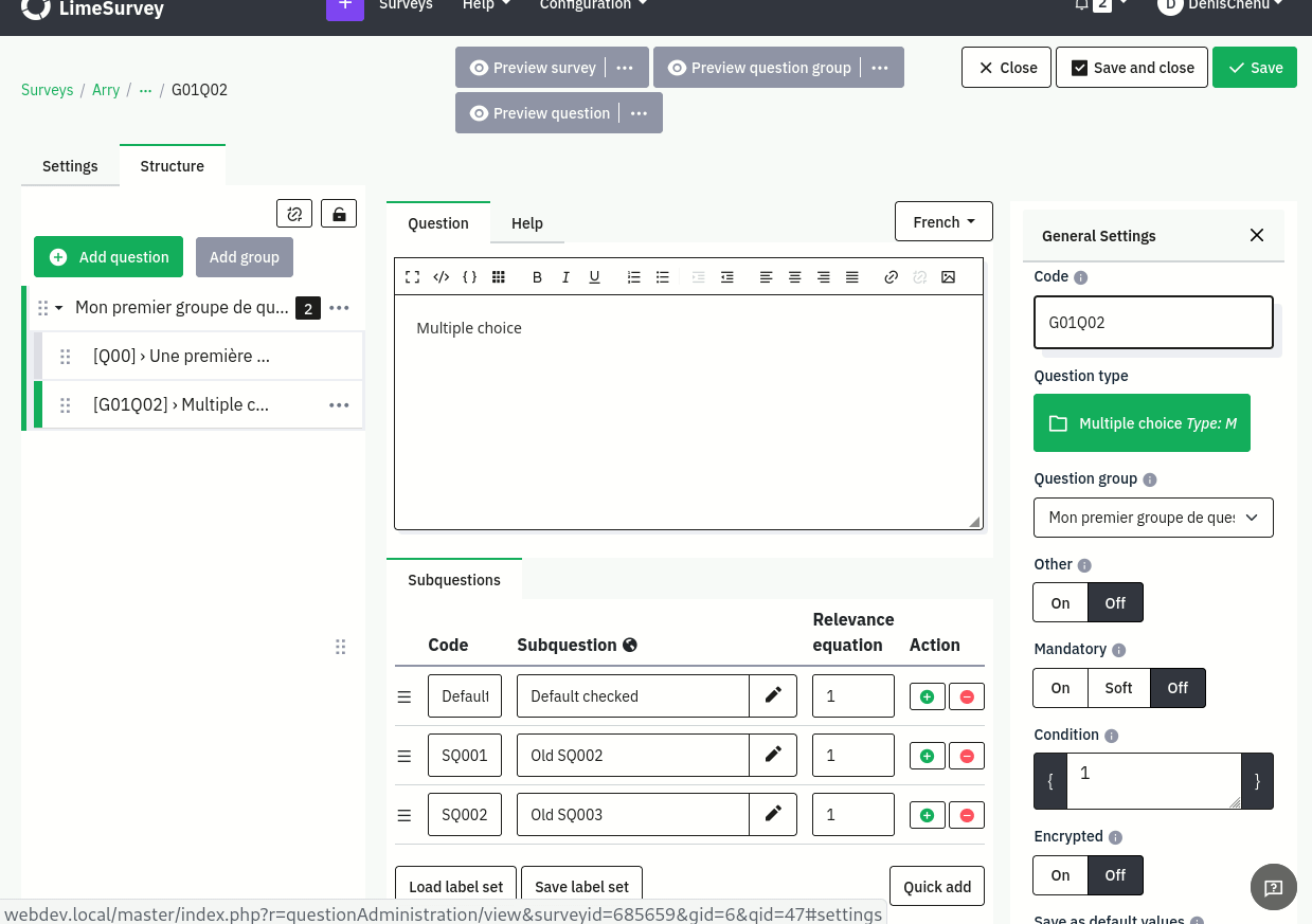 I have just checked and it still gives the same error. After adding sub-questions with unique names, and click "save" and then if we click on "save and close", it gives error. But if we do not click on "save and close" it does not give error. I stick to Denis' way for now. Thanks. |
