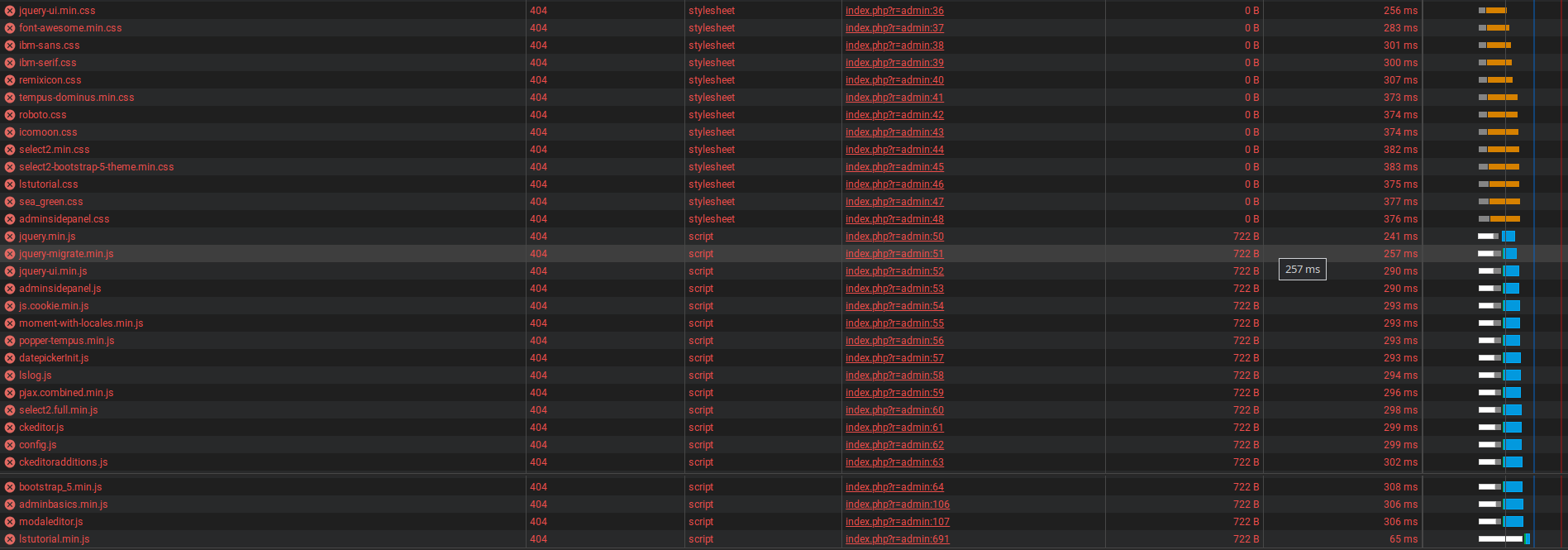 [26/Sep/2023:17:20:43 +0200] "GET /tmp/assets/2e6f987/js/select2.full.min.js HTTP/2.0" 404 132 "https://domain.de/index.php?r=admin" "Mozilla/5.0 (X11; Linux x86_64) AppleWebKit/537.36 (KHTML, like Gecko) Chrome/118.0.0.0 Safari/537.36" [26/Sep/2023:17:20:43 +0200] "GET /tmp/assets/e35cbe66/ckeditor.js HTTP/2.0" 404 132 "https://domain.de/index.php?r=admin" "Mozilla/5.0 (X11; Linux x86_64) AppleWebKit/537.36 (KHTML, like Gecko) Chrome/118.0.0.0 Safari/537.36" [26/Sep/2023:17:20:43 +0200] "GET /tmp/assets/e35cbe66/config.js HTTP/2.0" 404 132 "https://domain.de/index.php?r=admin" "Mozilla/5.0 (X11; Linux x86_64) AppleWebKit/537.36 (KHTML, like Gecko) Chrome/118.0.0.0 Safari/537.36" [26/Sep/2023:17:20:43 +0200] "GET /tmp/assets/4db98322/ckeditoradditions.js HTTP/2.0" 404 132 "https://domain.de/index.php?r=admin" "Mozilla/5.0 (X11; Linux x86_64) AppleWebKit/537.36 (KHTML, like Gecko) Chrome/118.0.0.0 Safari/537.36" [26/Sep/2023:17:20:43 +0200] "GET /tmp/assets/eeea5f3a/js/bootstrap_5.min.js HTTP/2.0" 404 132 "https://domain.de/index.php?r=admin" "Mozilla/5.0 (X11; Linux x86_64) AppleWebKit/537.36 (KHTML, like Gecko) Chrome/118.0.0.0 Safari/537.36" 26/Sep/2023:17:20:43 +0200] "GET /tmp/assets/e6ccb482/script.js HTTP/2.0" 200 93 "https://domain.de/index.php?r=admin" "Mozilla/5.0 (X11; Linux x86_64) AppleWebKit/537.36 (KHTML, like Gecko) Chrome/118.0.0.0 Safari/537.36" [26/Sep/2023:17:20:43 +0200] "GET /tmp/assets/34e56688/script.js HTTP/2.0" 200 27 "https://domain.de/index.php?r=admin" "Mozilla/5.0 (X11; Linux x86_64) AppleWebKit/537.36 (KHTML, like Gecko) Chrome/118.0.0.0 Safari/537.36" [26/Sep/2023:17:20:43 +0200] "GET /tmp/assets/2daa08ee/build/adminbasics.min.js HTTP/2.0" 404 132 "https://domain.de/index.php?r=admin" "Mozilla/5.0 (X11; Linux x86_64) AppleWebKit/537.36 (KHTML, like Gecko) Chrome/118.0.0.0 Safari/537.36" [26/Sep/2023:17:20:43 +0200] "GET /tmp/assets/a4d746b8/js/modaleditor.js HTTP/2.0" 404 132 "https://domain.de/index.php?r=admin" "Mozilla/5.0 (X11; Linux x86_64) AppleWebKit/537.36 (KHTML, like Gecko) Chrome/118.0.0.0 Safari/537.36" lime_global_setting.log (8,243 bytes)