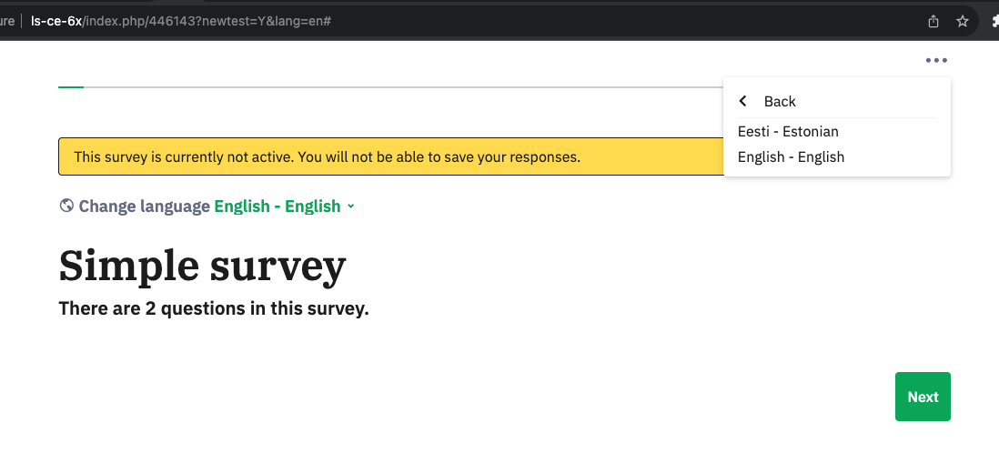 | Complete LimeSurvey version number (& build) | 6.2.9 | ||||