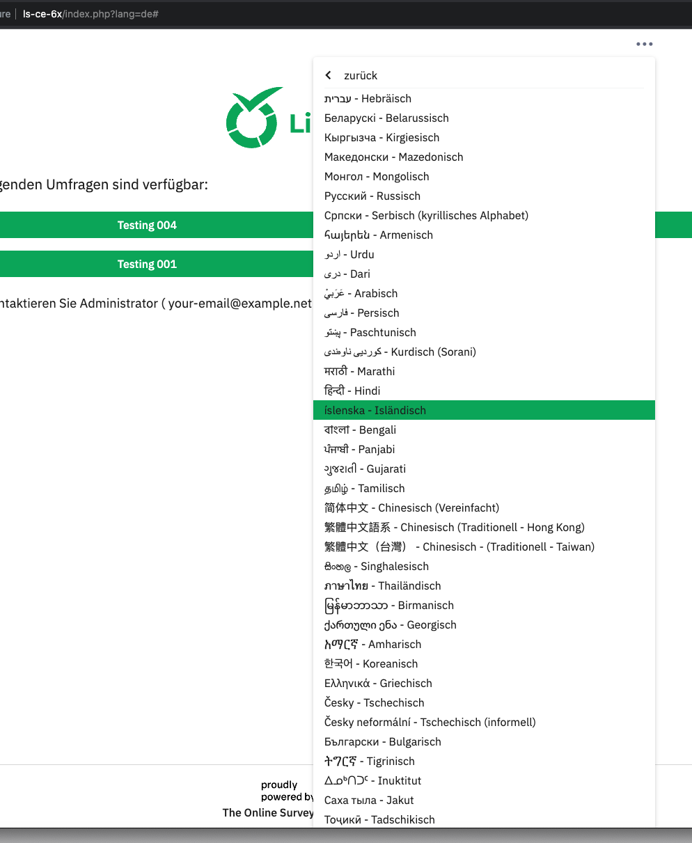| Summary | 19149: fruity_23: can't change language (languages are not displayed) in nagvigation bar (three dots) in survey list | ||||
