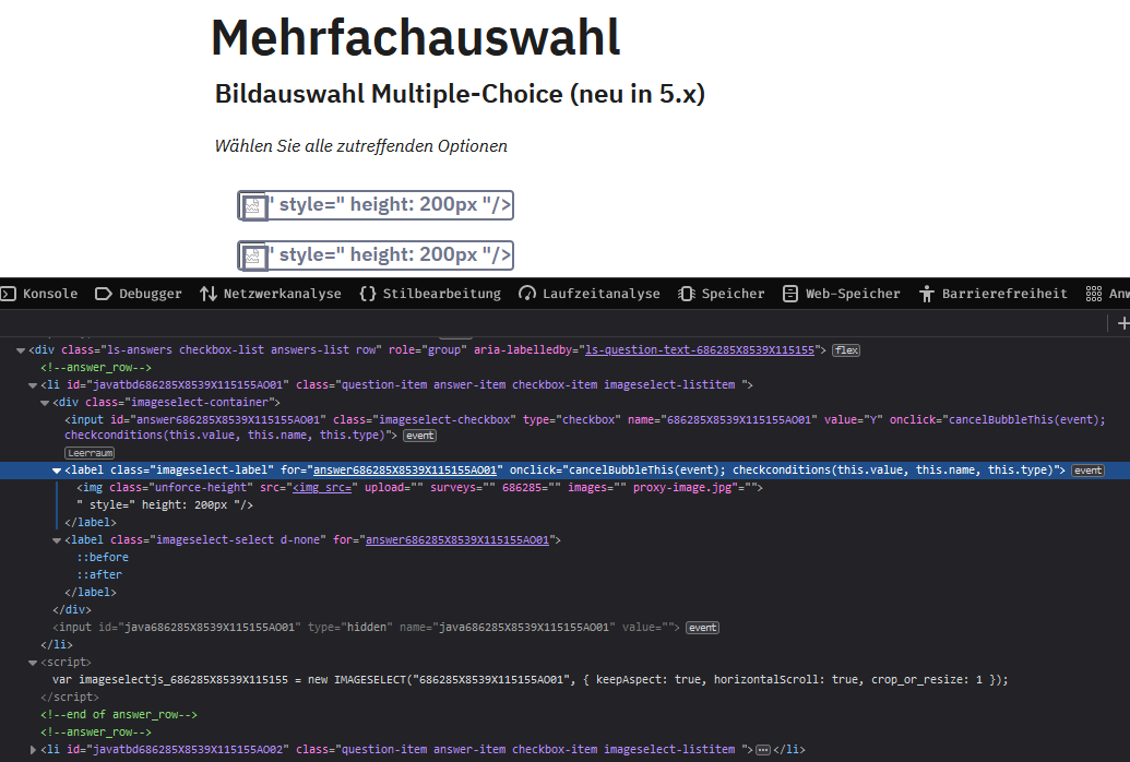 | related to | 20033 | confirmed | Image select multiple choice - subquestion HTML-Tags |