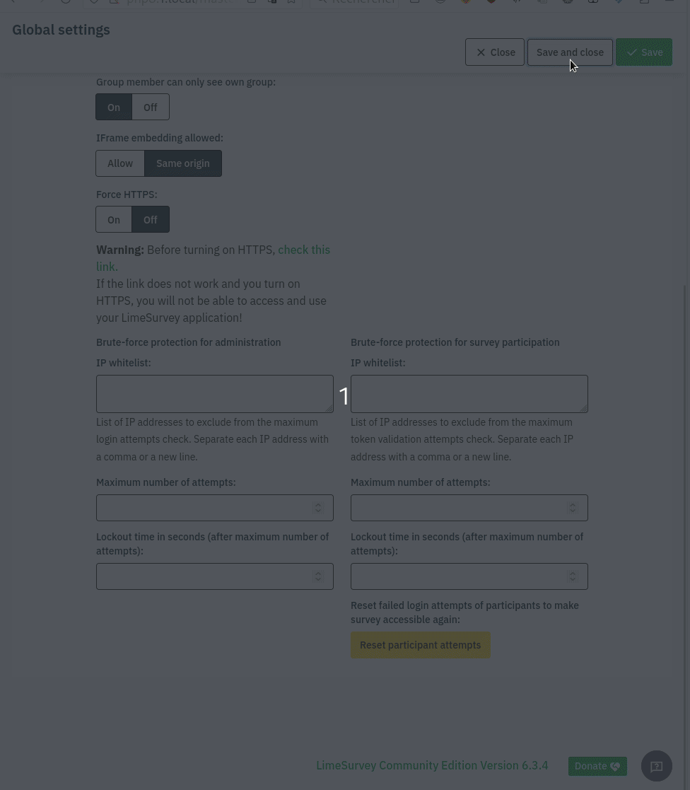 | Steps To Reproduce | Steps to reproduceIn general settings remove the timeout & retry values for administration/survey participants and save. Expected resultYou should not be able to save, you should be forced to give a positive integer number >=0. Actual resultYou can save. After logging out you are unable to log in, anymore. | ||||