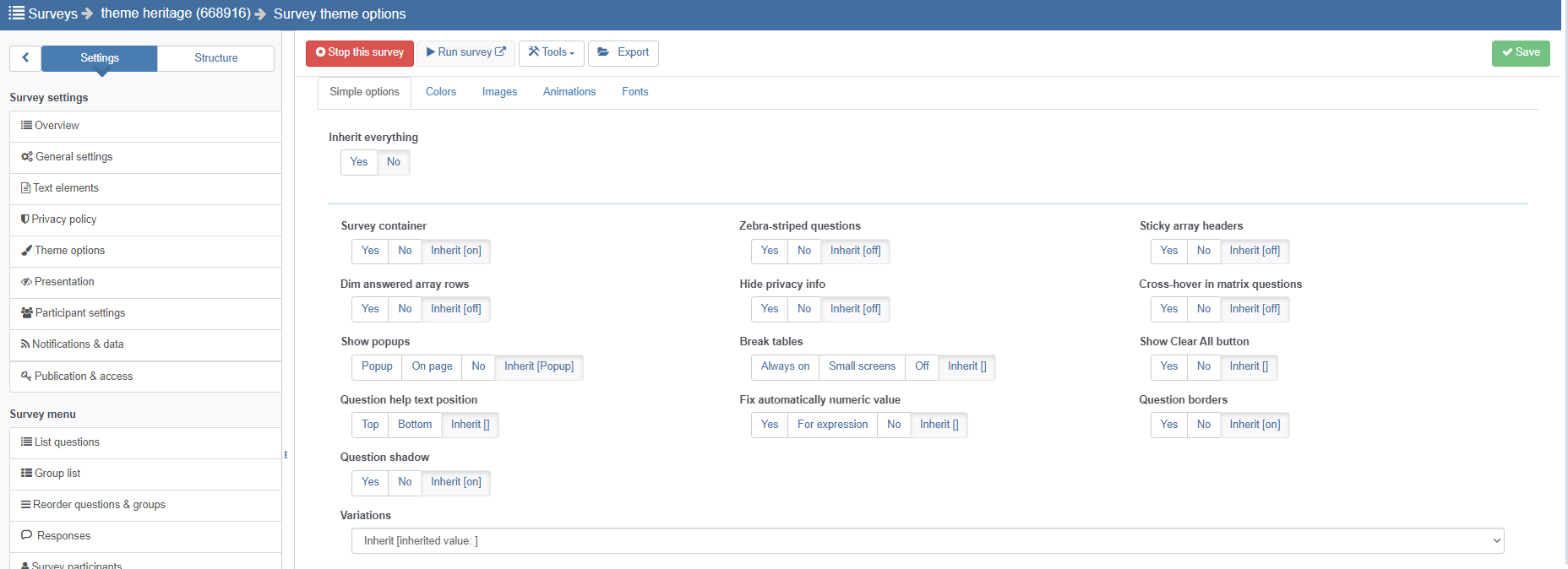 | Summary | 19246: Survey editor theme option not working | ||||