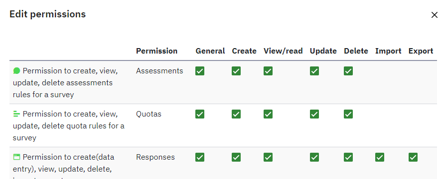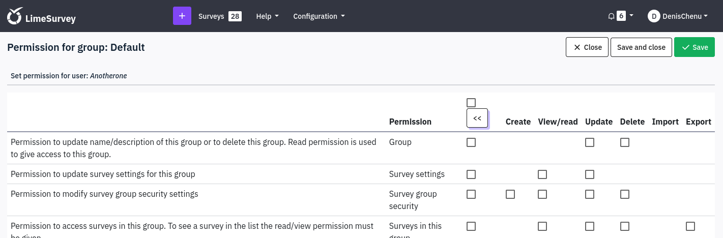 | related to | 16440 | closed | cdorin | Feature requests | Survey group Permission : minimal system |