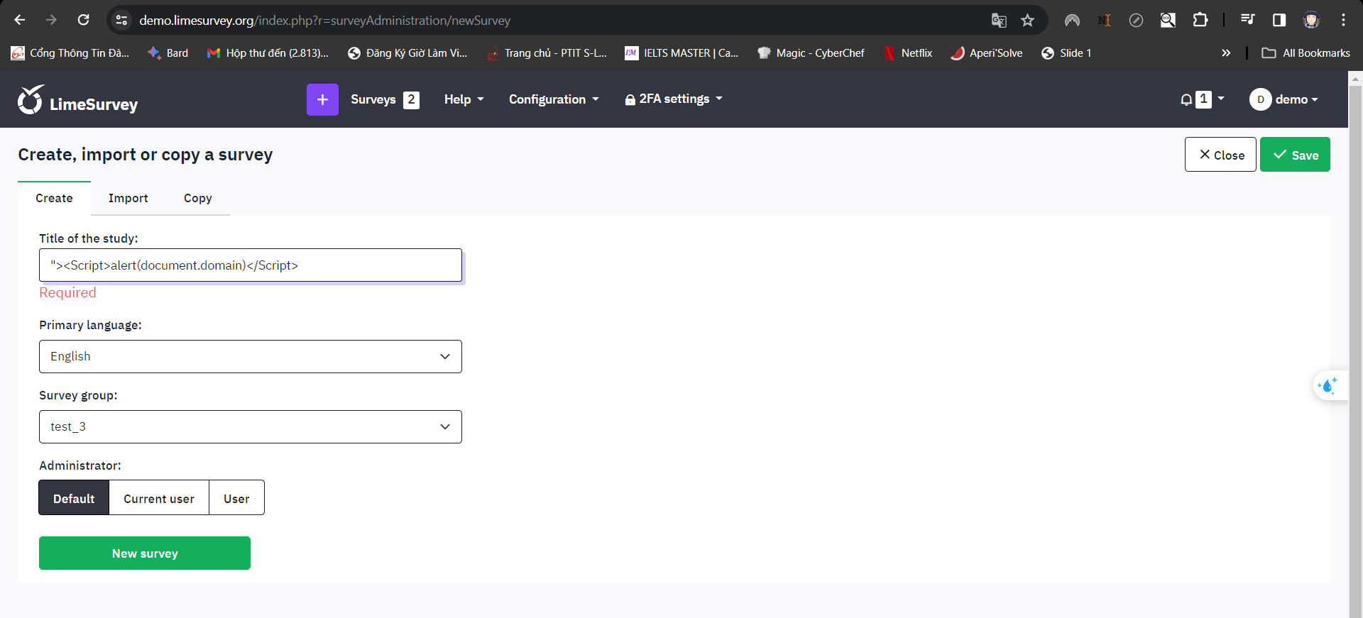 | Summary | 19318: I can stored XSS in limesurvey in latest version | ||||