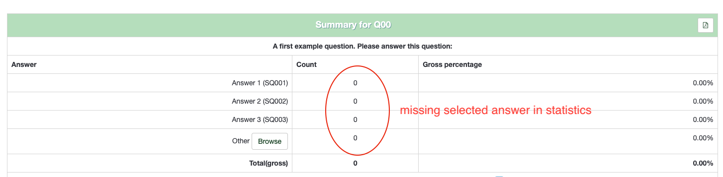 | Description | Hello, i can't see selected answers to encrypted questions (type: multiple choice) in the statistics. Best regards | ||||