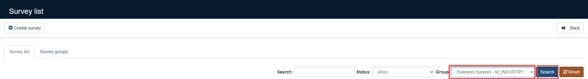 | Summary | 19372: Error 500 : Filter survey by groups doesn't works | ||||