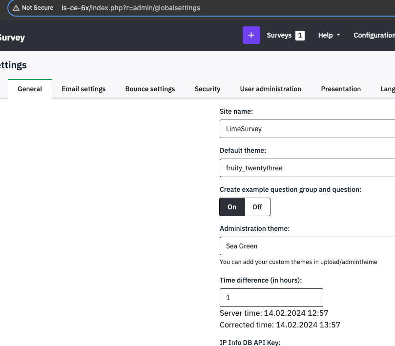 | Complete LimeSurvey version number (& build) | LimeSurvey Community Edition Version 6.4.5+240205 | ||||