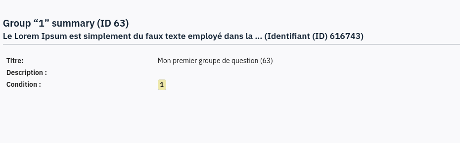 Yes, I found another strange behavior. I'm going to make a new bug with video, because we can't easily put the steps. And another also from a questionnaire that I did recently, with 80 questions and 20 groups. The conditioning is wonderful. |