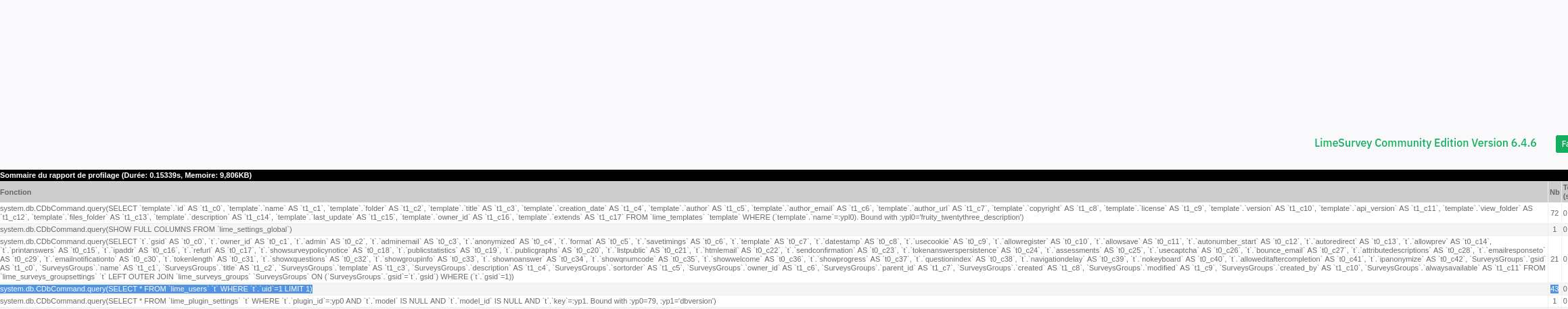 18 survey in survey listing : avoid 35 call of system.db.CDbCommand.query(SELECT * FROM |