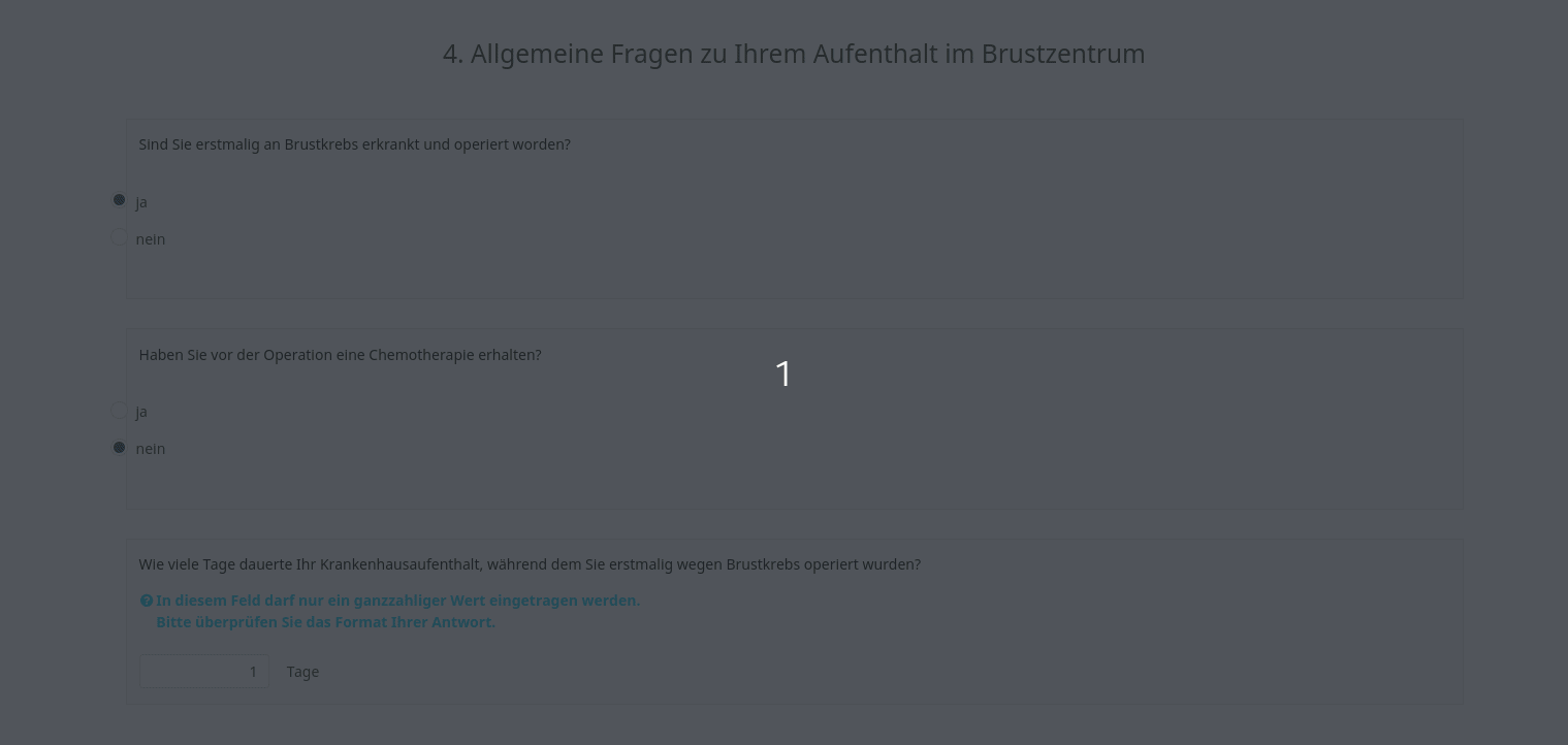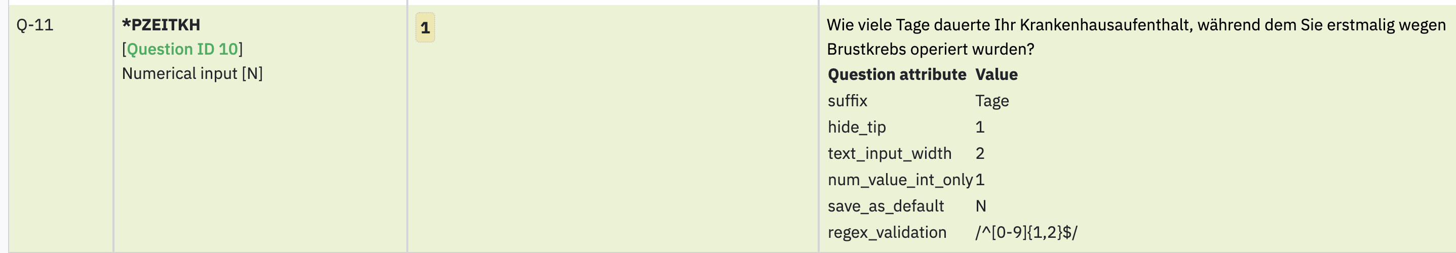 | Description | Question that is causing the error (see screenshot). The issue is happening during survey taking and when a participant chooses to save his responses. Later, he resumes the survey and the incorrect page/question is displayed. The issue has been solved for the customer, with a workaround by replacing the regex and setting “Input” -> “Maximum characters” to 2. Therefore, the decision has been made to close the support tickets on the related board in favour of a bug ticket, aiming to permanently resolve the issue. | ||||