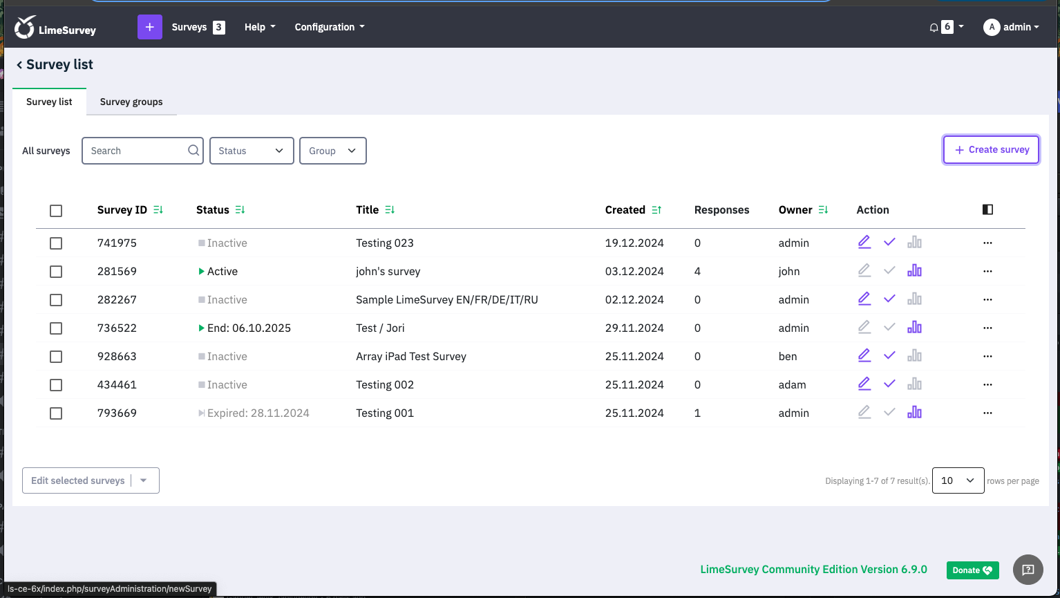 | Complete LimeSurvey version number (& build) | 6.4.12+240311 | ||||