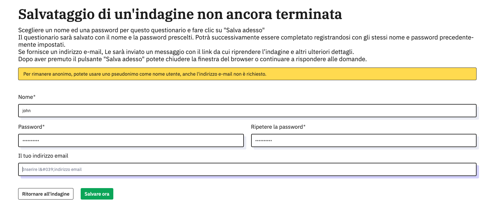 | Steps To Reproduce | Steps to reproduceRun survey in Italian language and save the results before finishing the survey. Expected result(Write here what you expected to happen) Actual result(Write here what happened instead) | ||||