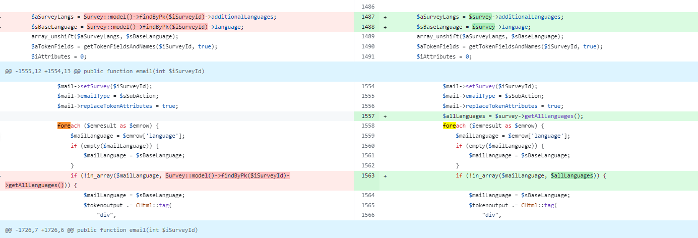 | 2024-06-06 15:17 | DenisChenu | Summary | Multuiple call of same request a lot of time => Multiple call of Survey->find a lot of time |