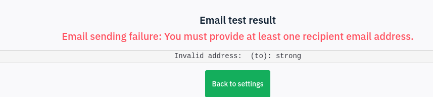 | Steps To Reproduce | Steps to reproduceMLogi as super admin Expected resultEmaisl sent (or not) : but have email error Actual resultEmail test result | ||||