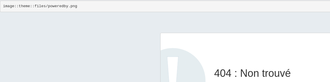 | Steps To Reproduce | Steps to reproduceImport included theme in 5.X, set a value for logo in options Import included theme in mastet, et a value for logo in options Expected resultsee image::theme::files/poweredby.png (or other picture) Actual resultEmpty pre element | ||||