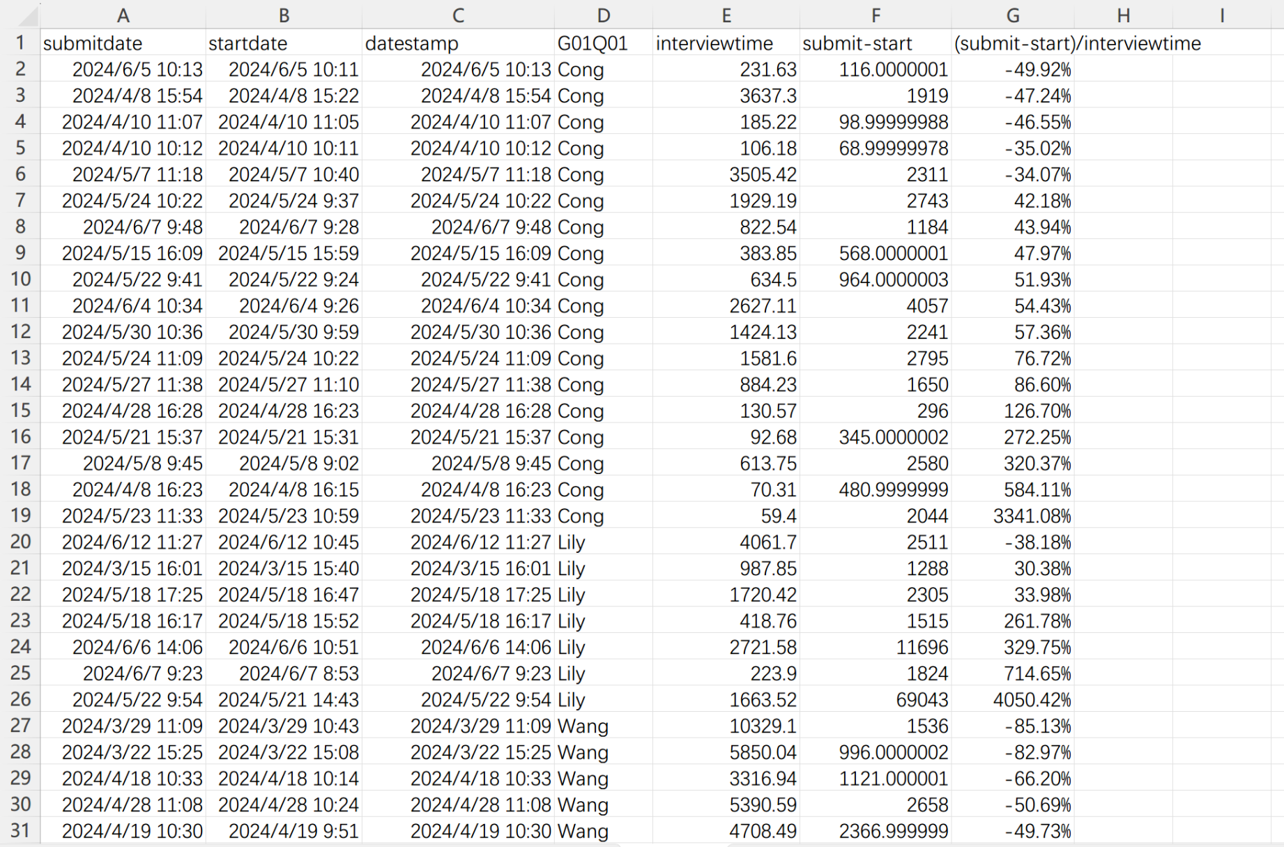 | Description | Hi, Theoretically the "submitdate - startdate" would not be much different from the "interviewtime" variable. But how it comes in my collected response that they are very different from each other? Attached is the screenshot of my collected sample, thank you for your kind advice! | ||||