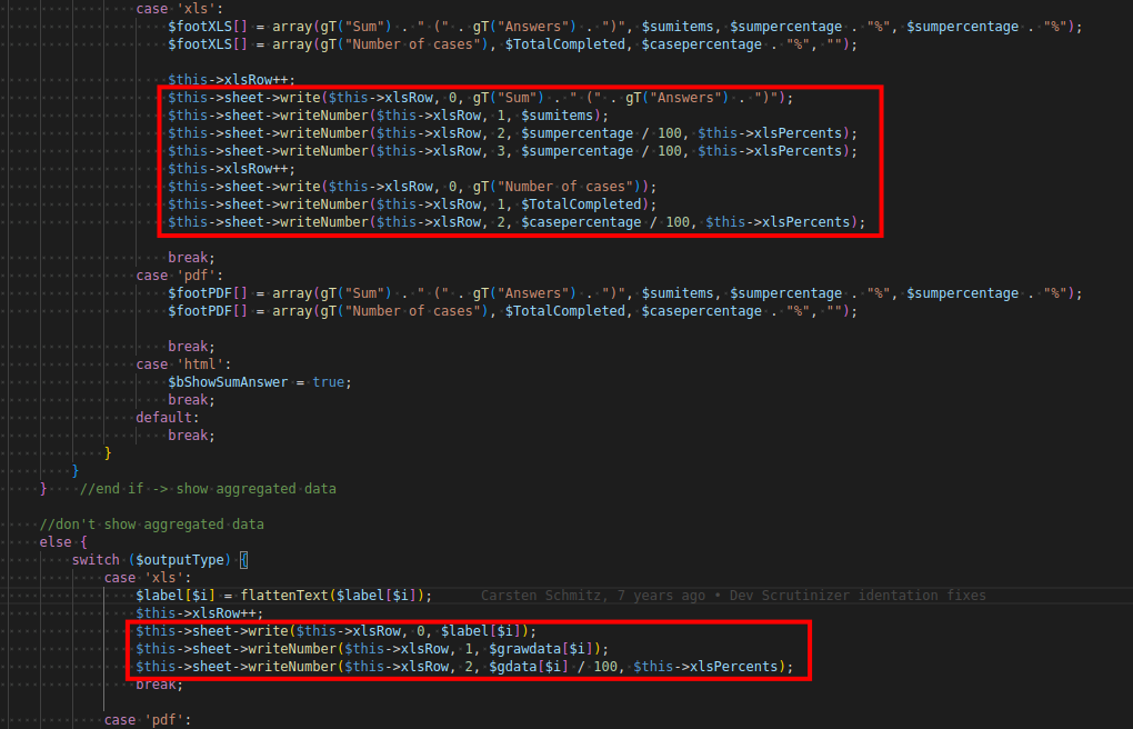 mk-j/php_xlsxwriter is really a great tool , and https://github.com/mk-j/PHP_XLSXWriter/commits?author=c-schmitz + https://github.com/mk-j/PHP_XLSXWriter/pulls?q=is%3Apr+author%3A%40me+is%3Aclosed The commit seems related to core here ? Not related to XLS ? |