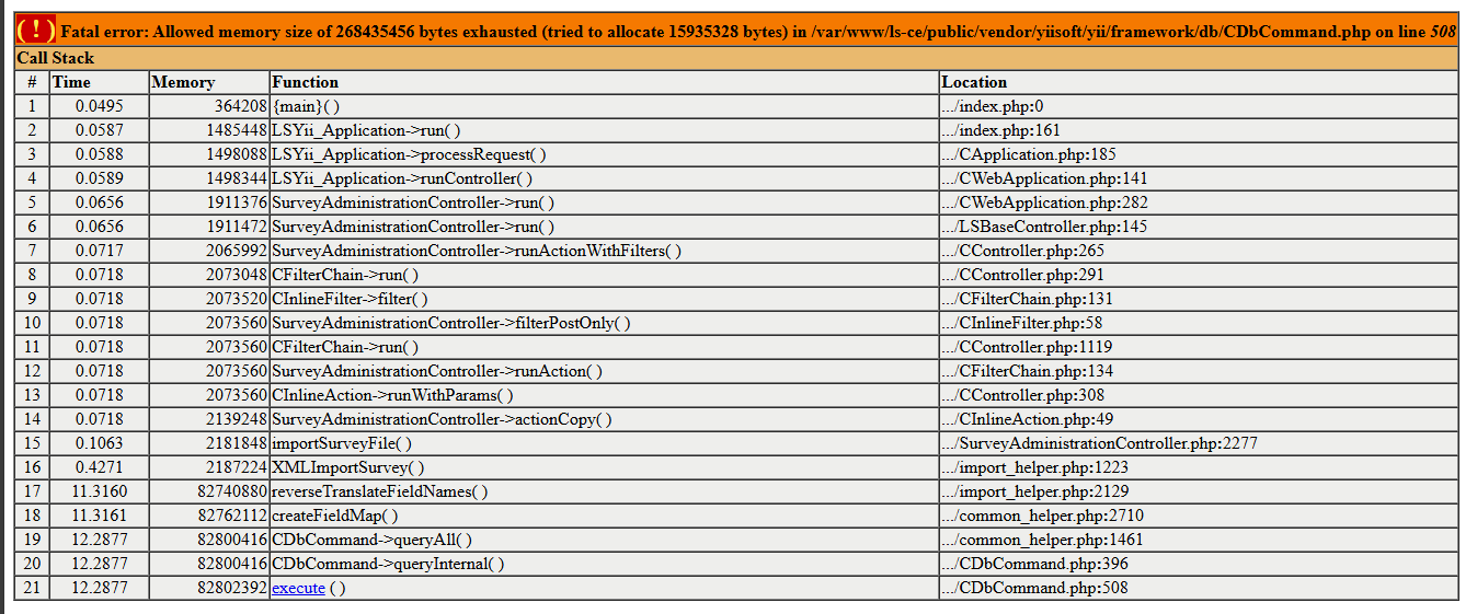 | Description | The customer was unable to open their survey and encountered a 500 error. I exported the survey, and its size was 47 MB, even though it only had around 100-140 questions. When I tried to import it, I encountered "out of memory" errors. Upon investigation, I noticed that the user had included base64 images in the questions/questionGroups descriptions, with some of these descriptions being as large as 15 MB. I was debugging this issue with Patrick, and we came to the following conclusions: