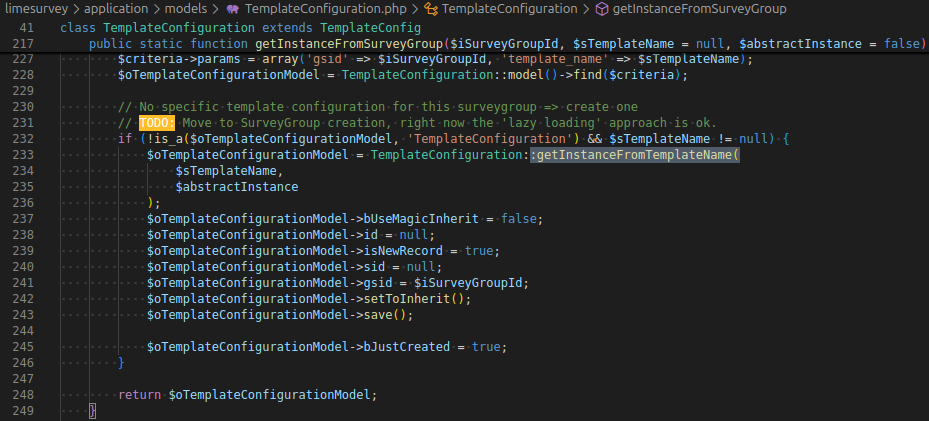 | Steps To Reproduce | Steps to reproduceHard to reproduce. Need to keep on working on it. Expected resultGet a specifc instance for the survey group. Actual resultUpdate the instance used for the base template configuracion | ||||