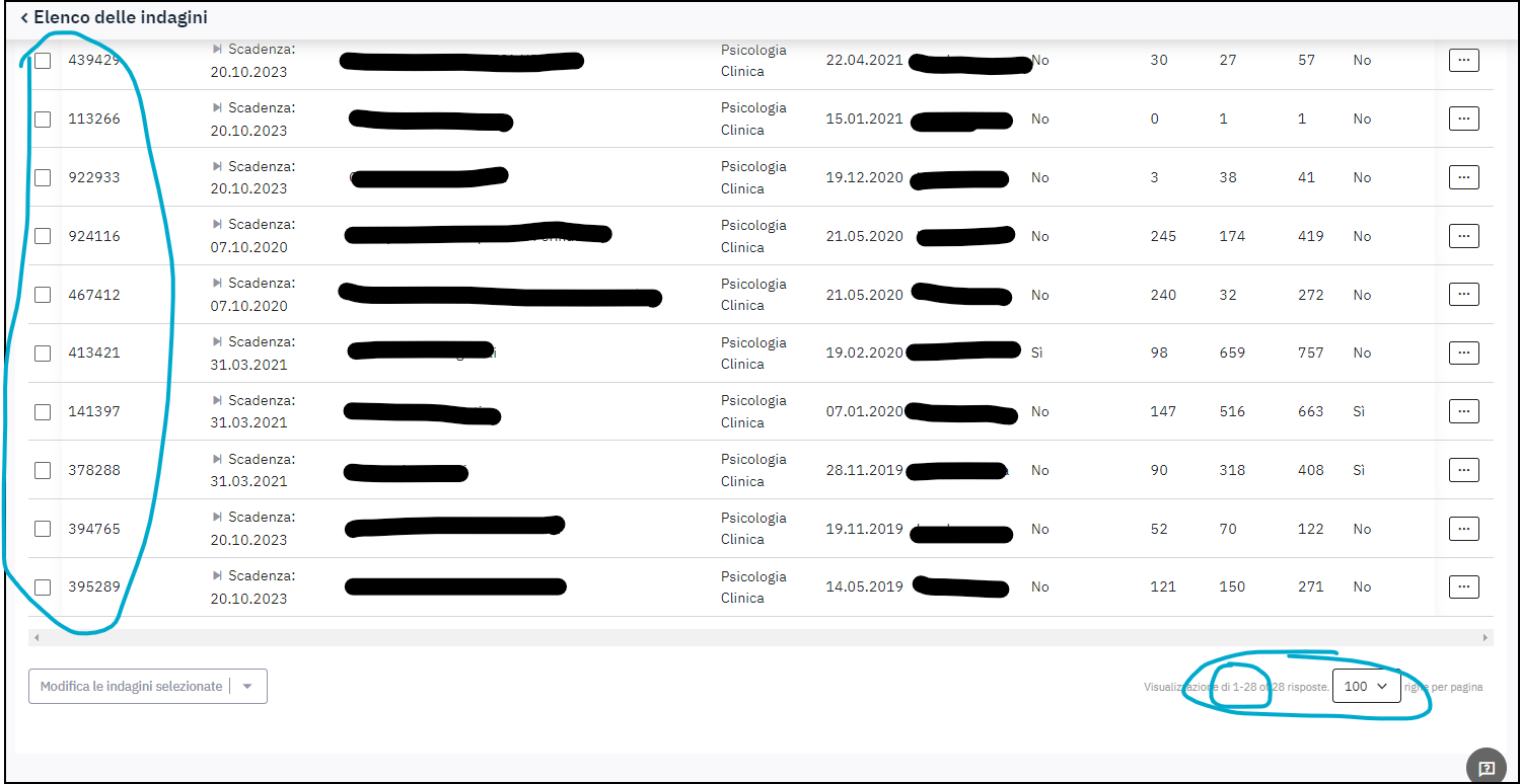 | Description | Dear, Another thing. In the top che can read an "81 surveys" but She has 28 surveys and in the all platform I, as admin, have 117 survey. Why 81? Thank you, | ||||