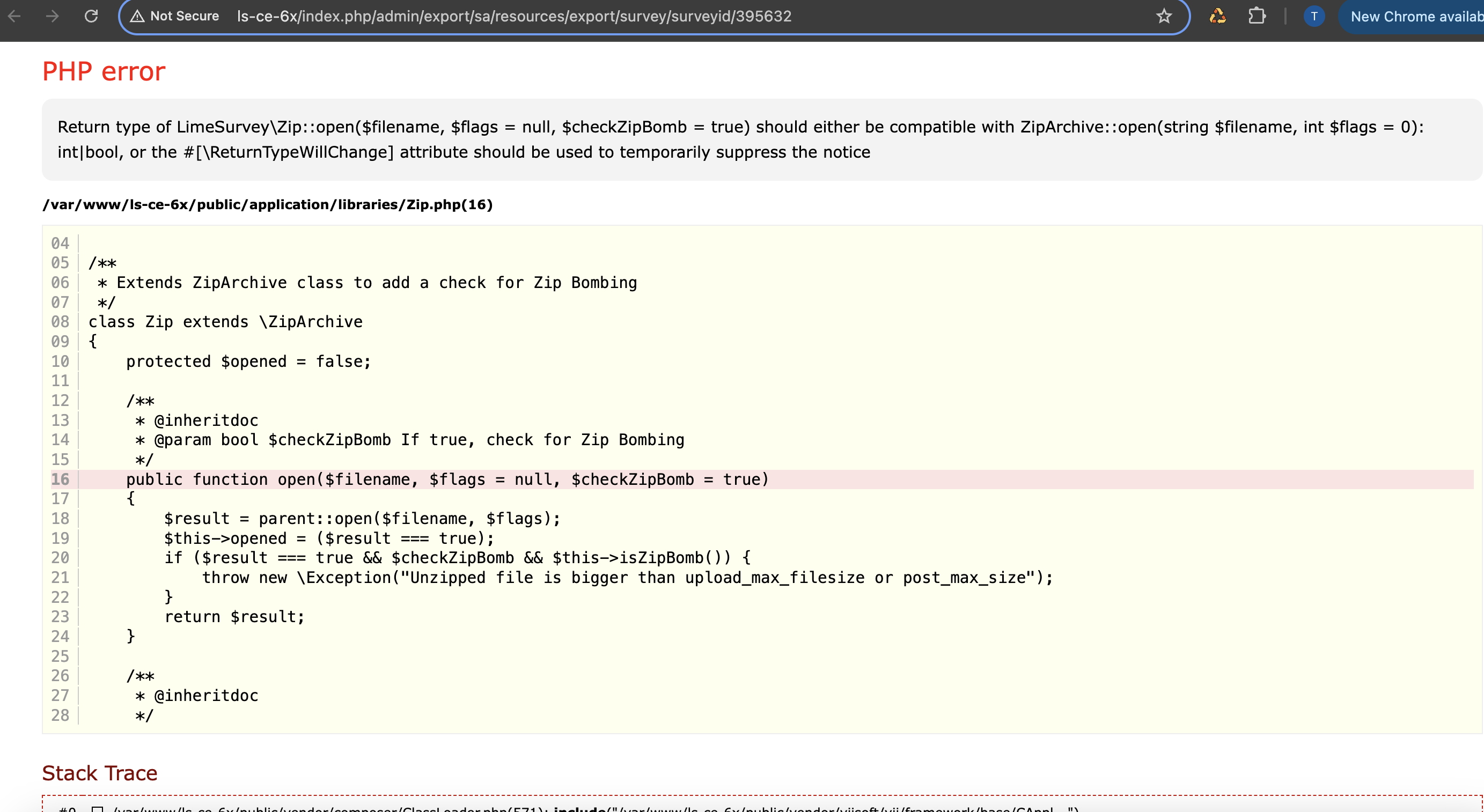 Fatal error: Object of class UnwindExit could not be converted to string in /var/www/ls-ce-6x/public/application/libraries/Zip.php on line 0 |