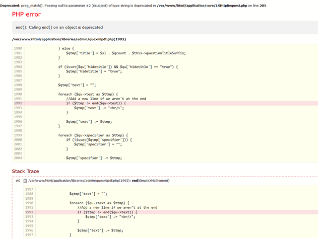 | Steps To Reproduce | Steps to reproduceLimesurvey with recent PHP8. Expected resultPDF download Actual resultPHP error in /var/www/html/application/librarires/admin/quexmlpdf.php (1992) | ||||