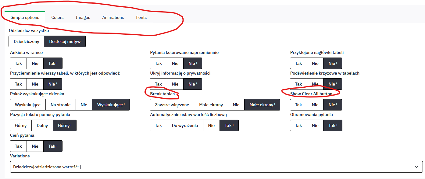 Expected resultAll options are translated to Polish Actual resultTabs remain in english, Break tables and show all clear button remain in english | ||||