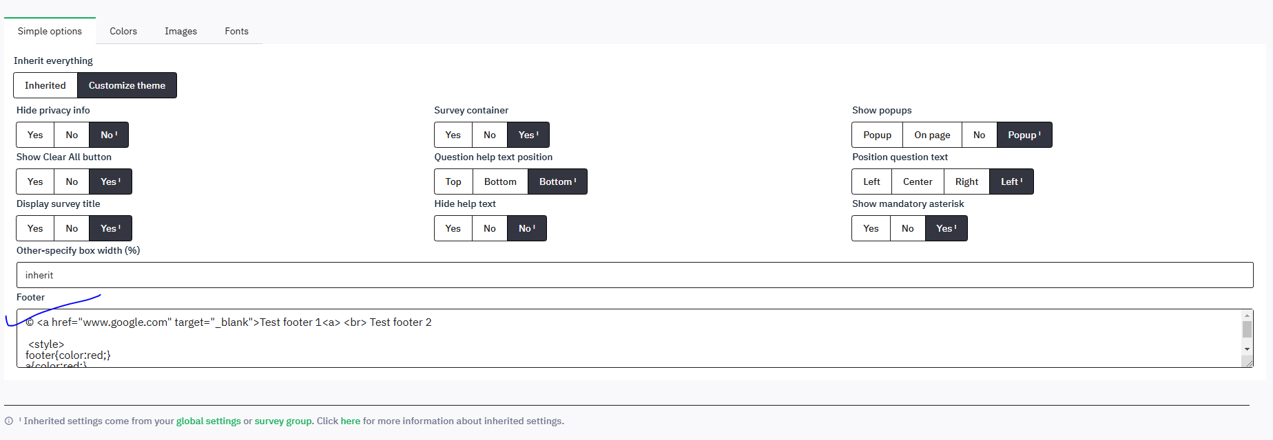 @tibor.pacalat: I can reporduce this. Can you assign it to a developer? This fully breaks surveys if there is HTML within a theme option. |