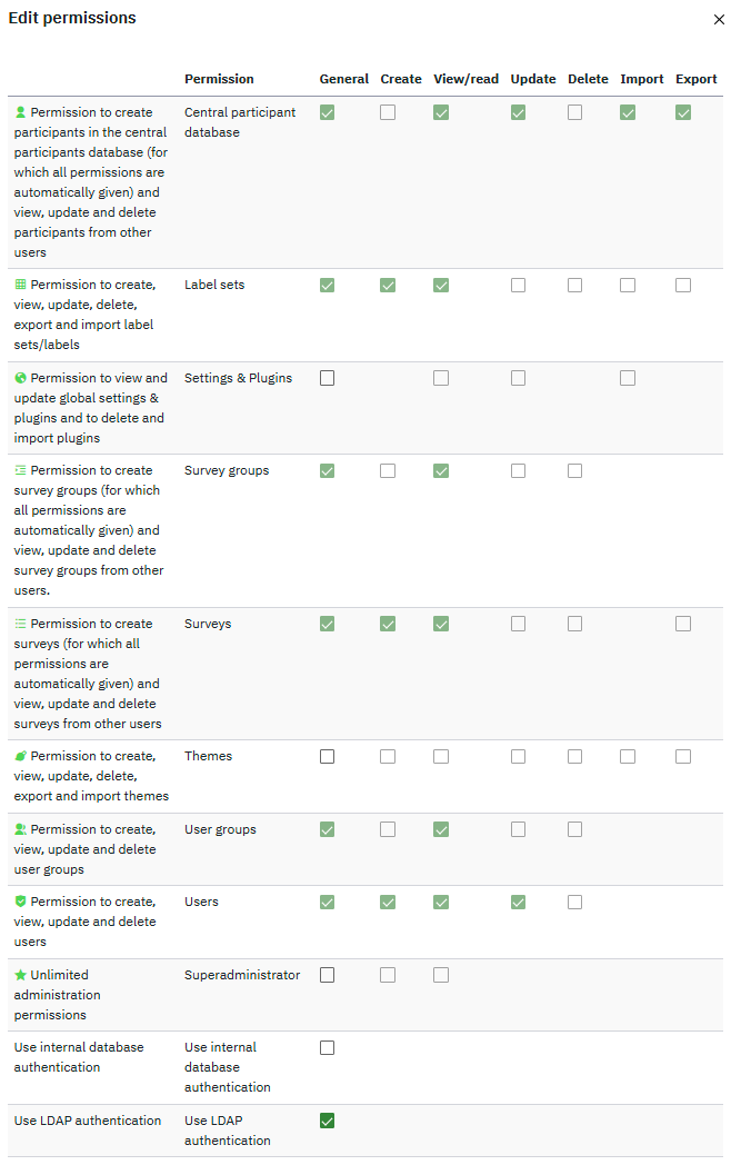| Description | Dear LimeSurvey crew, In my LimeSurvey setup, non-superadmin users cannot add other users to their surveys, as no users or groups appear on the list to be added. I have tried adding more permissions (see specific role.png attachment) but it still doesn't work. Can you help? In my organization, this is fundamental, as the surveys are edited in teams. | ||||