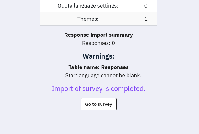 The response are not imported, and the error are shown but simple user have no way to edit response … except unzip, update XML (can be hard), zip and try again. Why not set a default value in place of set as required ? |