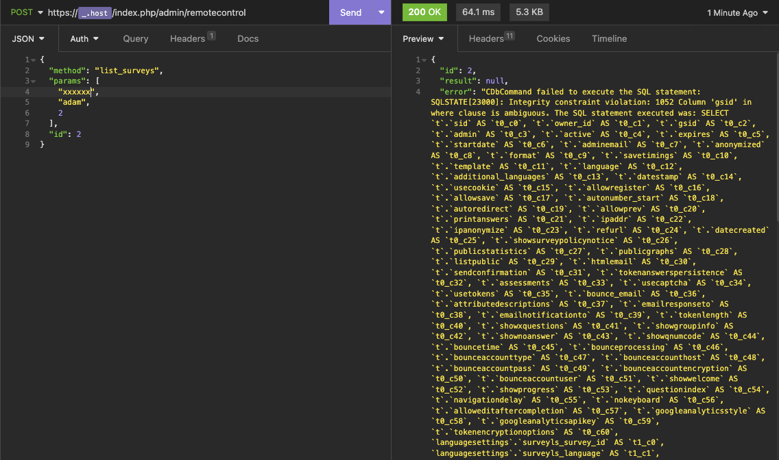 I mean : join is done with I don't found a second gsid here. PS : i have an update version of jsonrpcphp to show the error send by LimeSurvey : you want it ? |
