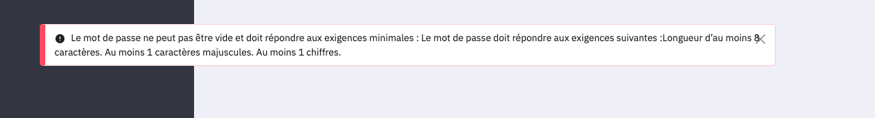| 2025-01-07 15:39 | tibor.pacalat | Summary | changer le message pour les mots de passe -reset password => change message for passwords -reset password |