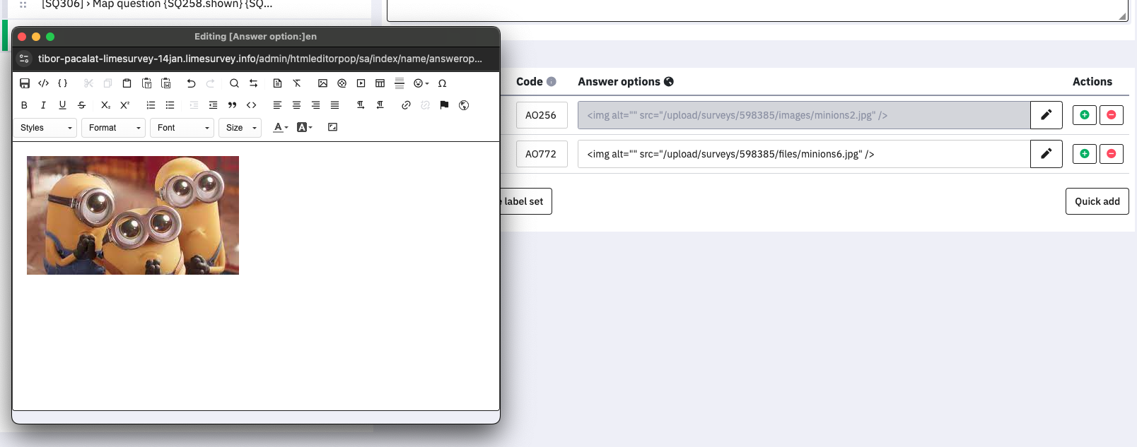 | Description | In 6.10. the link generation behind input field image is broken. link is generated like this and won't work (403 / unavailable Survey-ID) while this order of parameters shows the right editor | ||||
