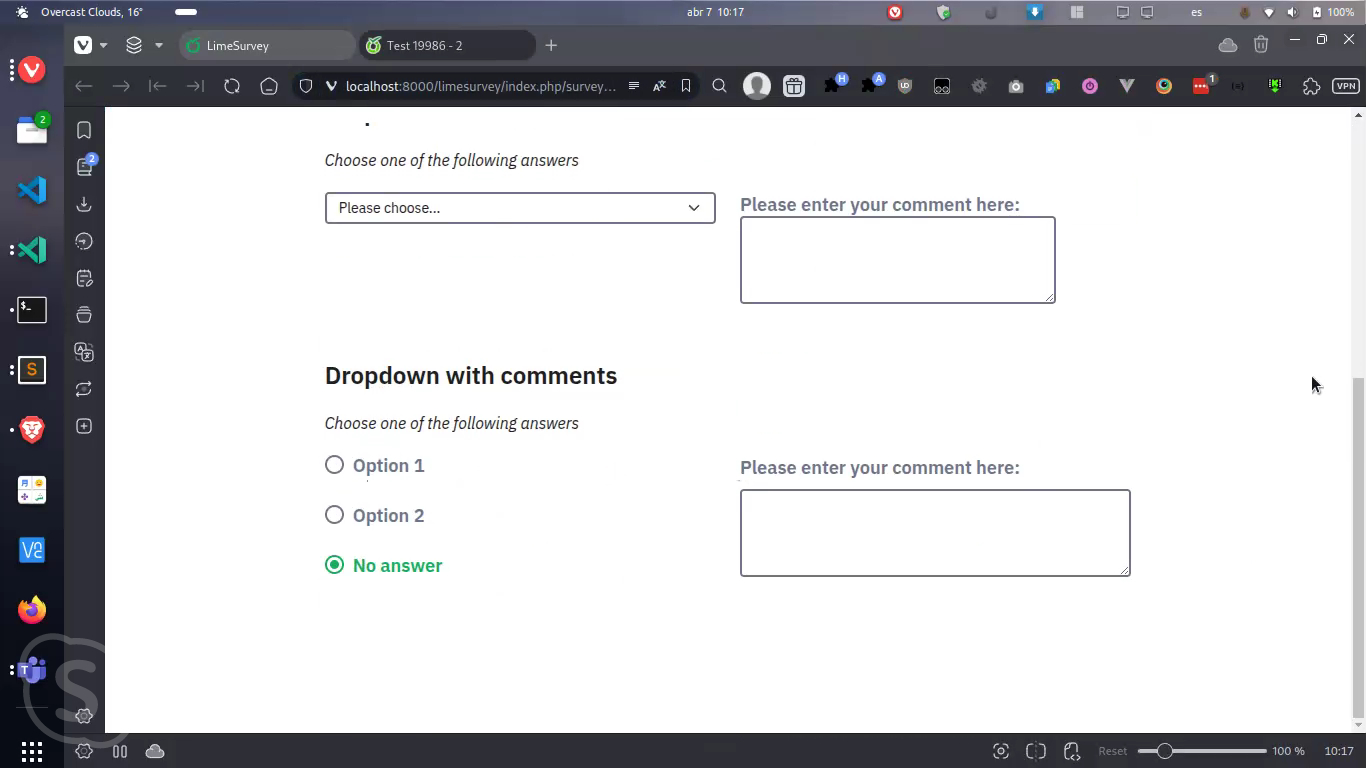 New version commited. As per the alignment, it is behaving the same as single choice radio. The best solution I see is, for the dropdown with comments question, to move the "Choose one of the following answers", from being a tip to being a label. That way both html controls will have a label. |